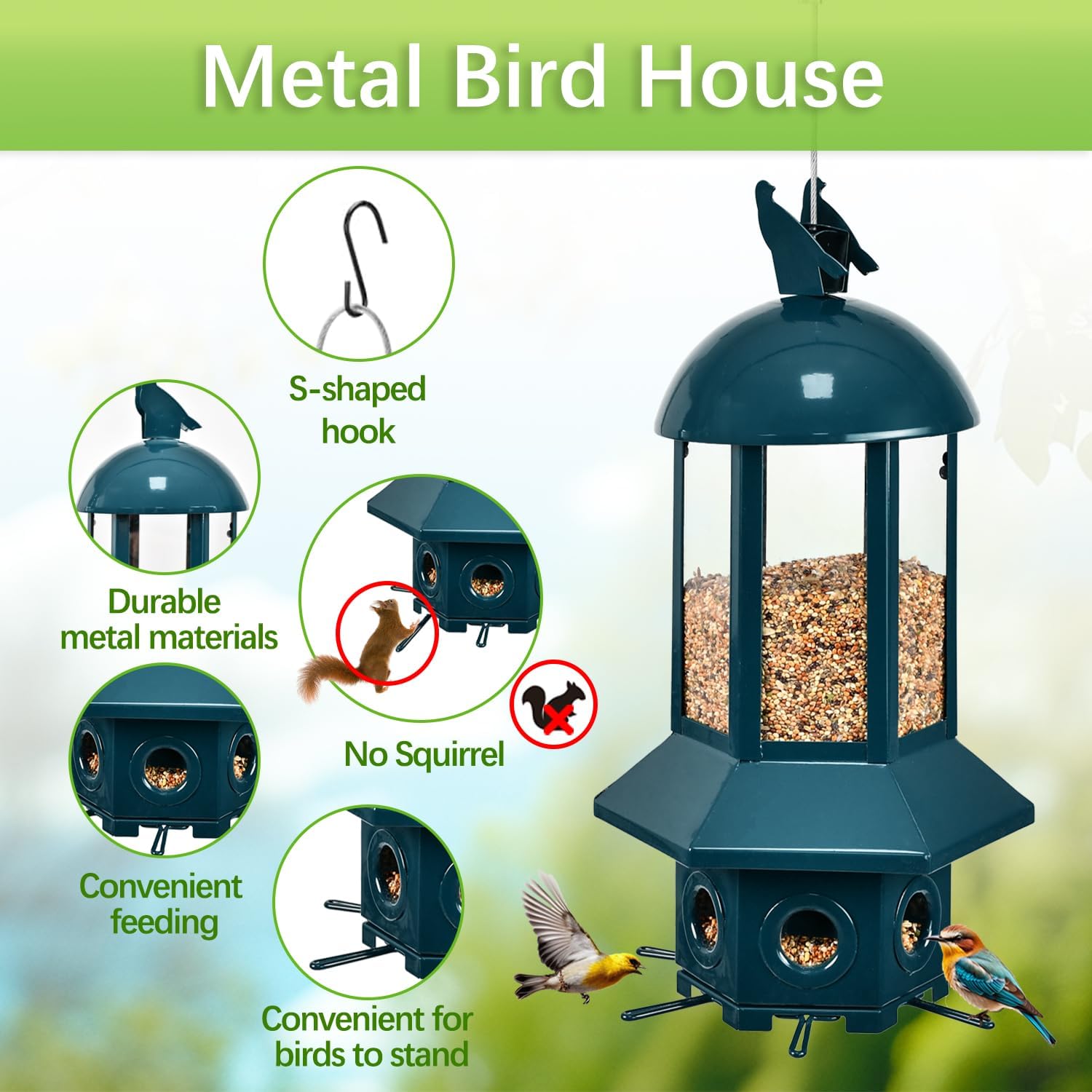 Professional Squirrel Proof Bird Feeders Large Capacity 5.06 lbs, Reliable and Rust Resistant Metal Bird Feeding Station for Prevents Squirrels from Stealing Food and Easy Refilling Blue