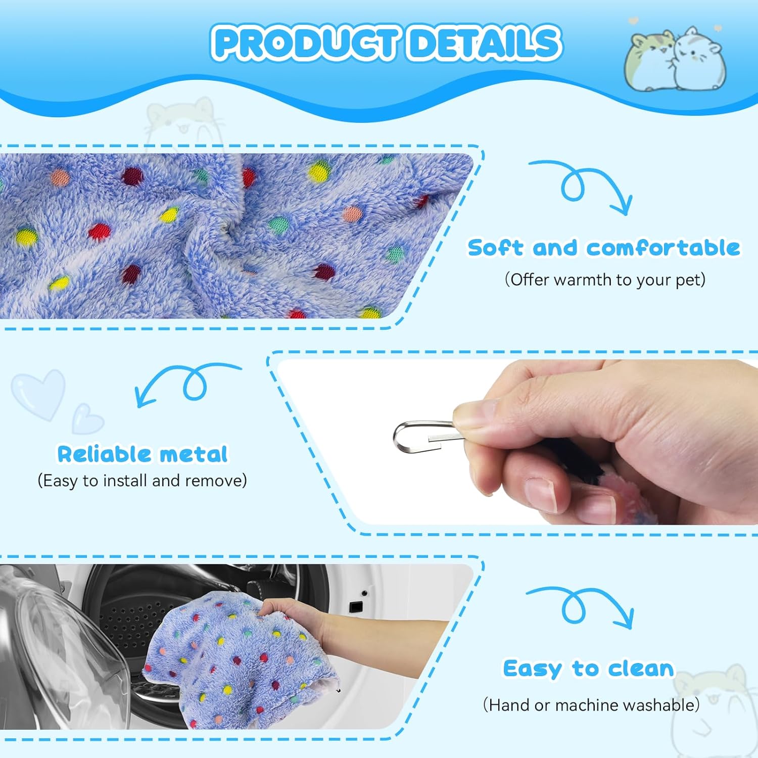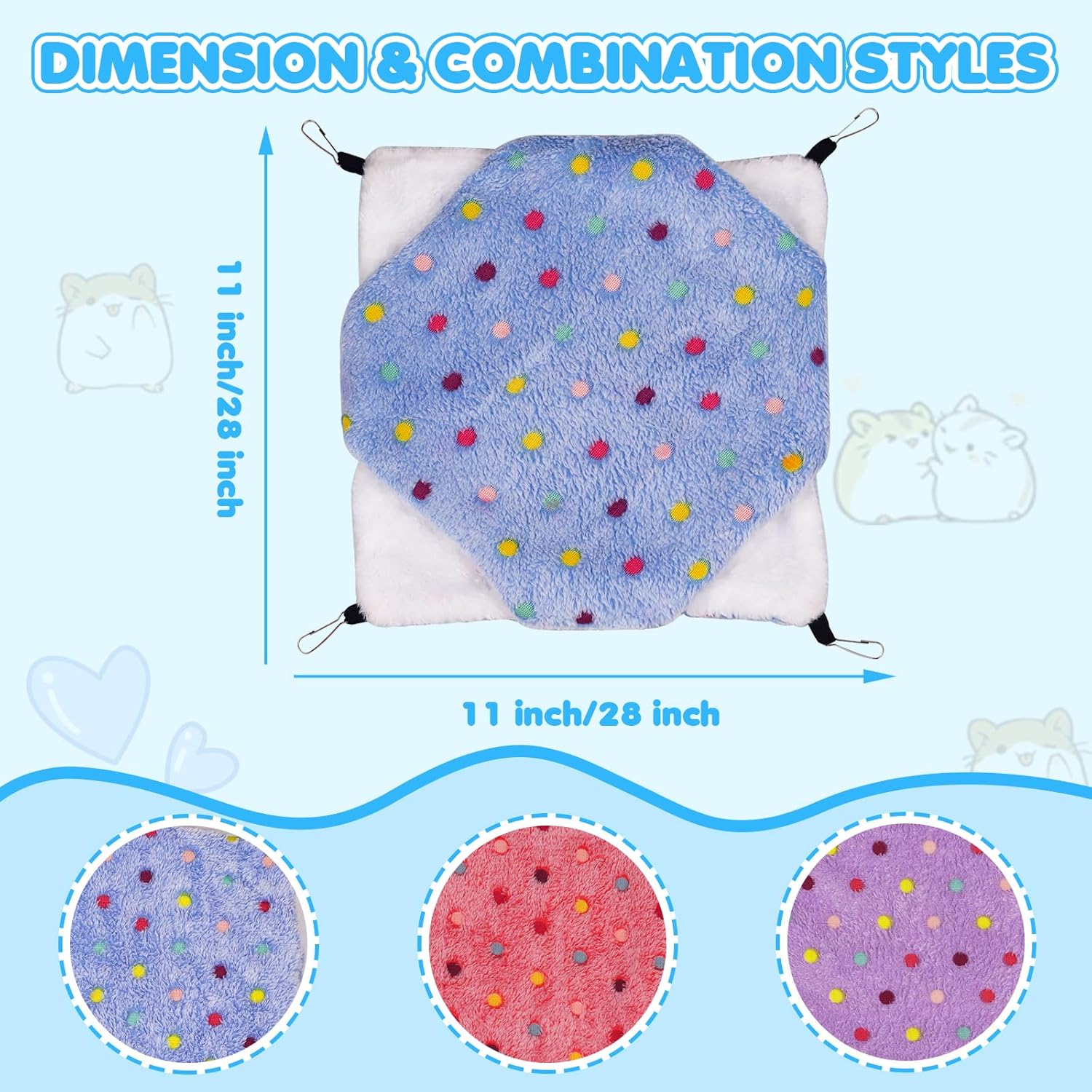 - PRODUCT INCLUDES : The set includes 3 small animal hammocks in different colors, each measuring 11×11 inches. It is suitable for hamsters, ferrets, gliders, guinea pigs, squirrels, chinchillas, guinea pigs, etc., it is a good choice for picking up a gift for your beloved pets