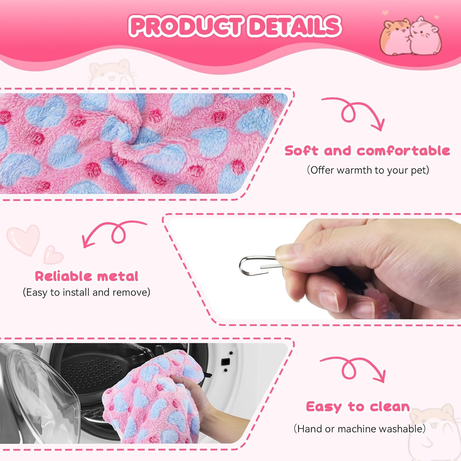 - EASY TO OPERATE:the 4 corners of the guinea pig hammock are equipped with metal hooks linked with straps,which is designed to attach to the small pet cage. The hammock can be washed by hand or machine, please remove the 4 metal hooks before washing