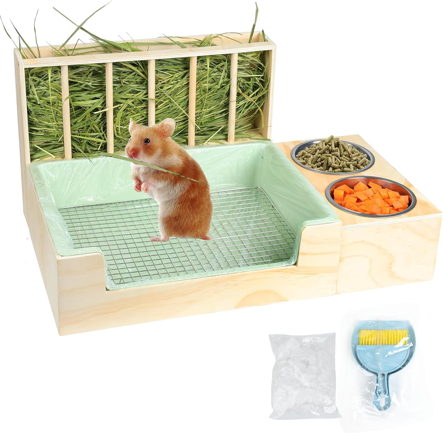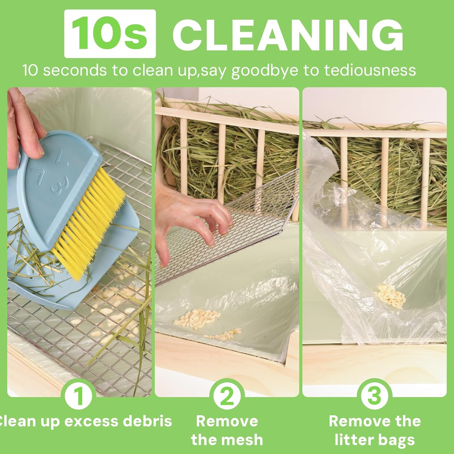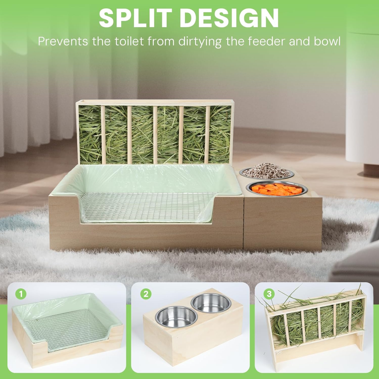 - 【3-in-1 Smart Design】Combines waste collection area, clean resting space, and hay feeding zone in one compact unit, making litter training easier while keeping your pet's habitat tidy.