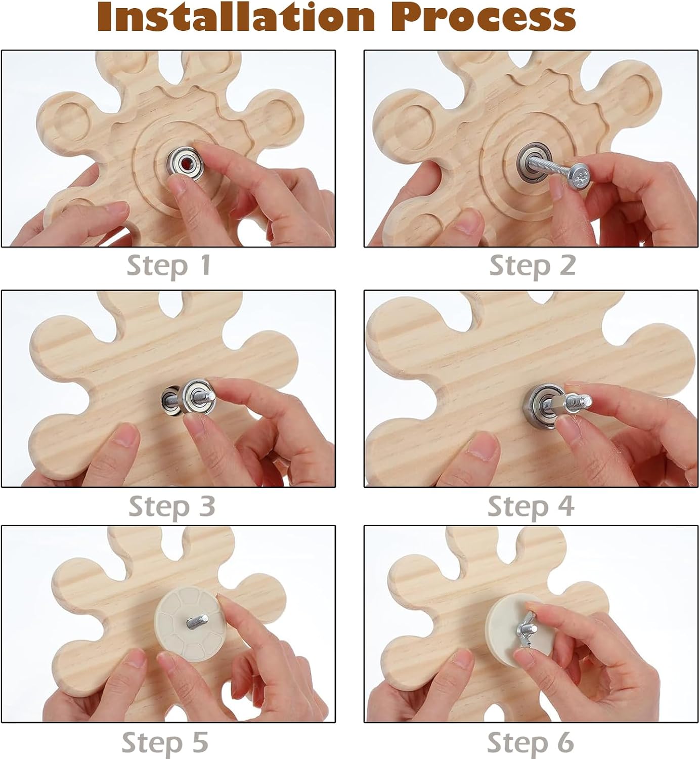 - Easy To Use : It is easy for you to assemble the guinea pig toys for cage. Firstly, install the bearing in the middle of the toy, then insert the screws, put the first flange from the top down, and then screw the nut column. Install another flange on the top of the nut column, and finally fix the nut mouth to all the parts. You only need to assemble the complete chewing toy on the pet cage, and then let your pet play with the chewing toy happily.