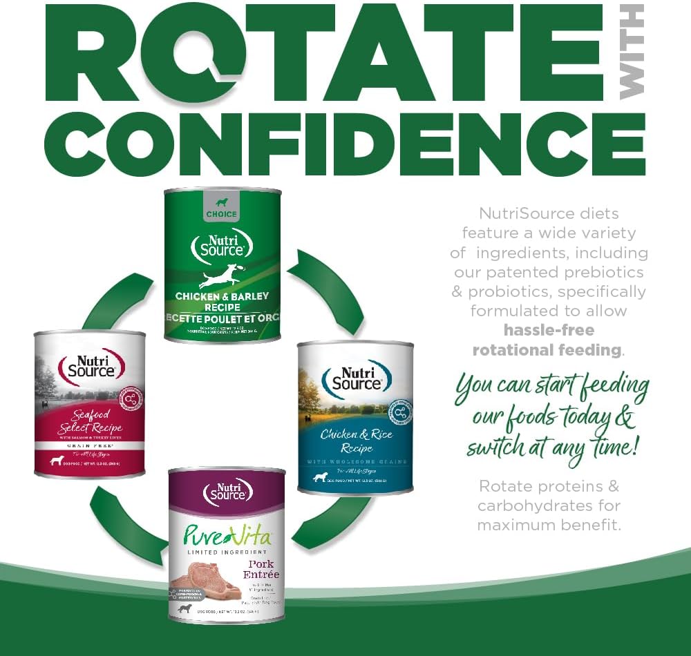 - PREMIUM INGREDIENTS- NutriSource canned dog foods always feature real meat as the #1 ingredient. Our Turkey & Rice recipe is a protein heavy, low carbohydrate diet suitable for all dogs