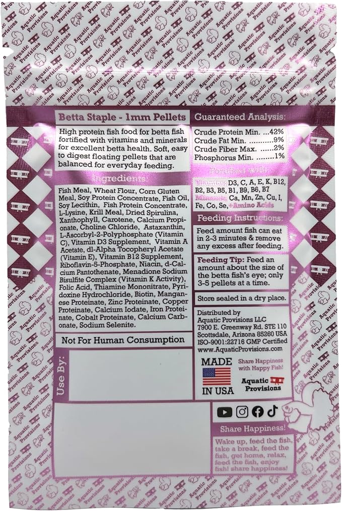 - 0.35oz (10g) Pack feeds 1 betta fish for 2-3 months