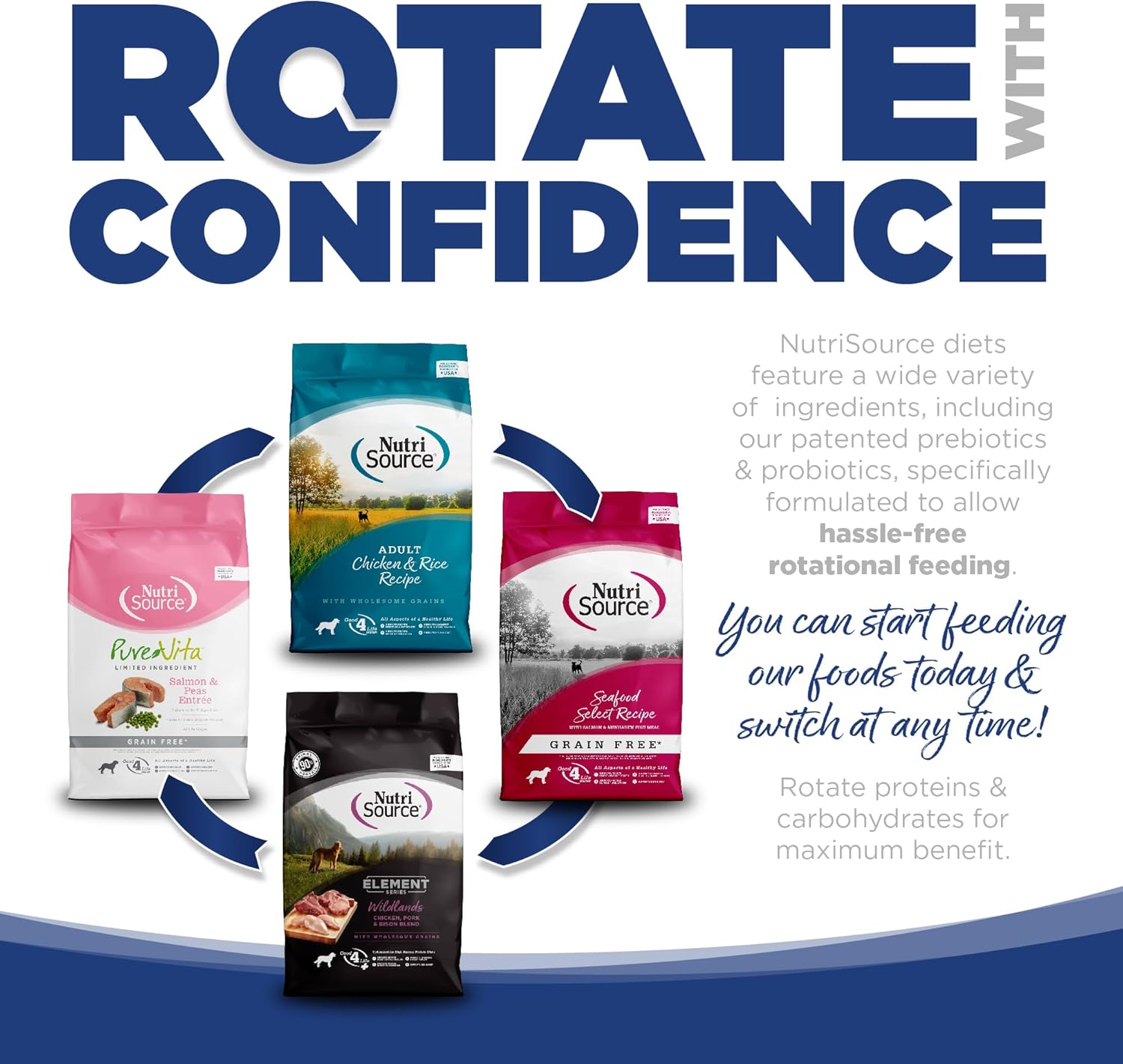 - As a member of our grain inclusive series, NutriSource Trout and Rice Dry Dog Food is formulated to meet AAFCO guidelines for all lifestages
