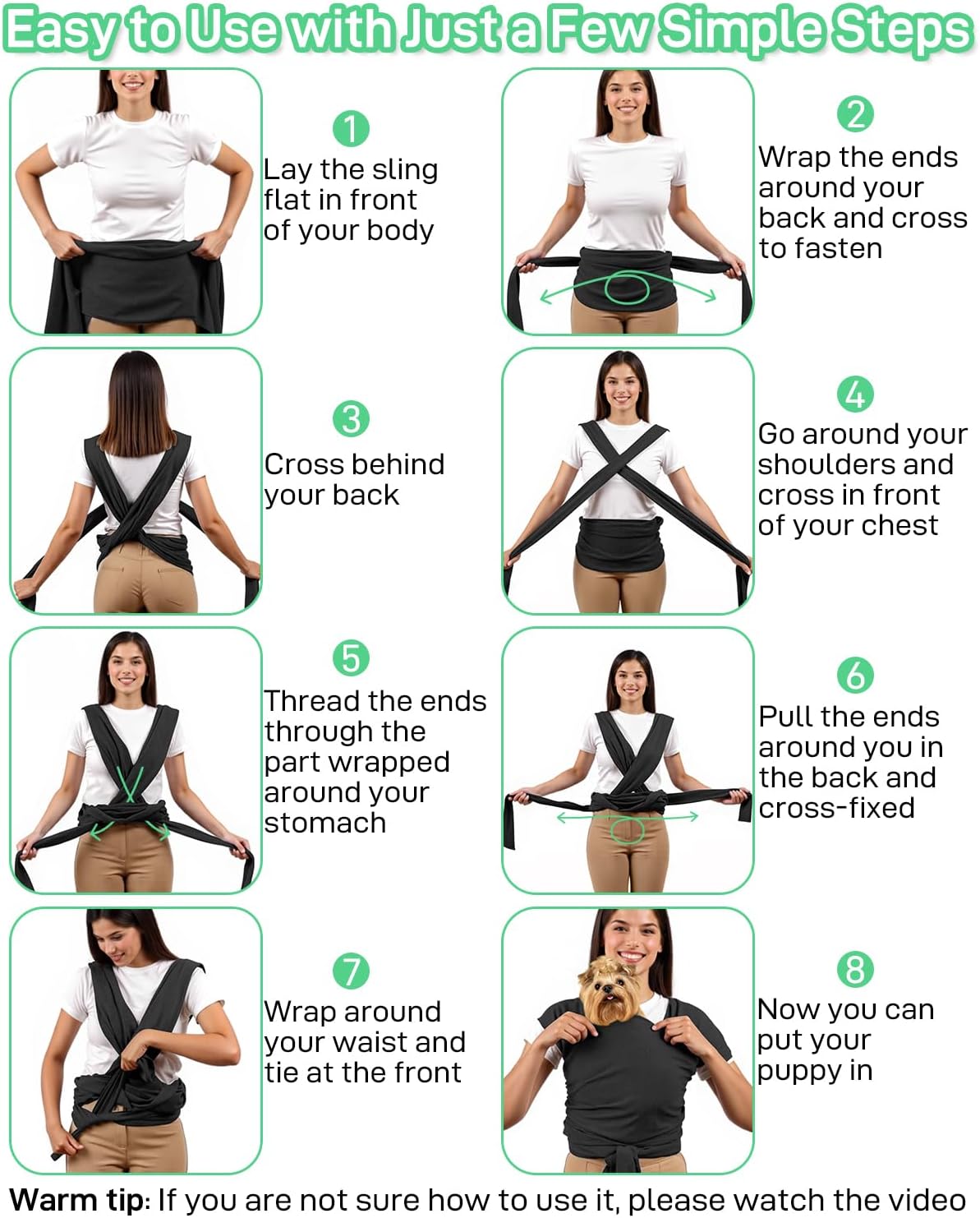 - Versatile Application: Dog carrier sling for small dog is versatile and suitable for a variety of scenarios. Whether you're traveling, walking, or shopping, the pet sling carrier allows you to hold your pet on your chest without disrupting your routine