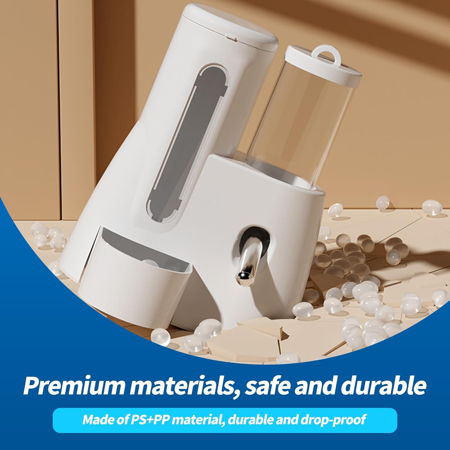 2-in-1 Hamster Water Bottle & Food Dispenser - Leak-Resistant Design for Glass/Wire Cages (120ml/4oz BPA-Free + Double Seal Nozzle) Dwarf Hamster & Mice Essentials (White, 6.3×5.1×4.3)