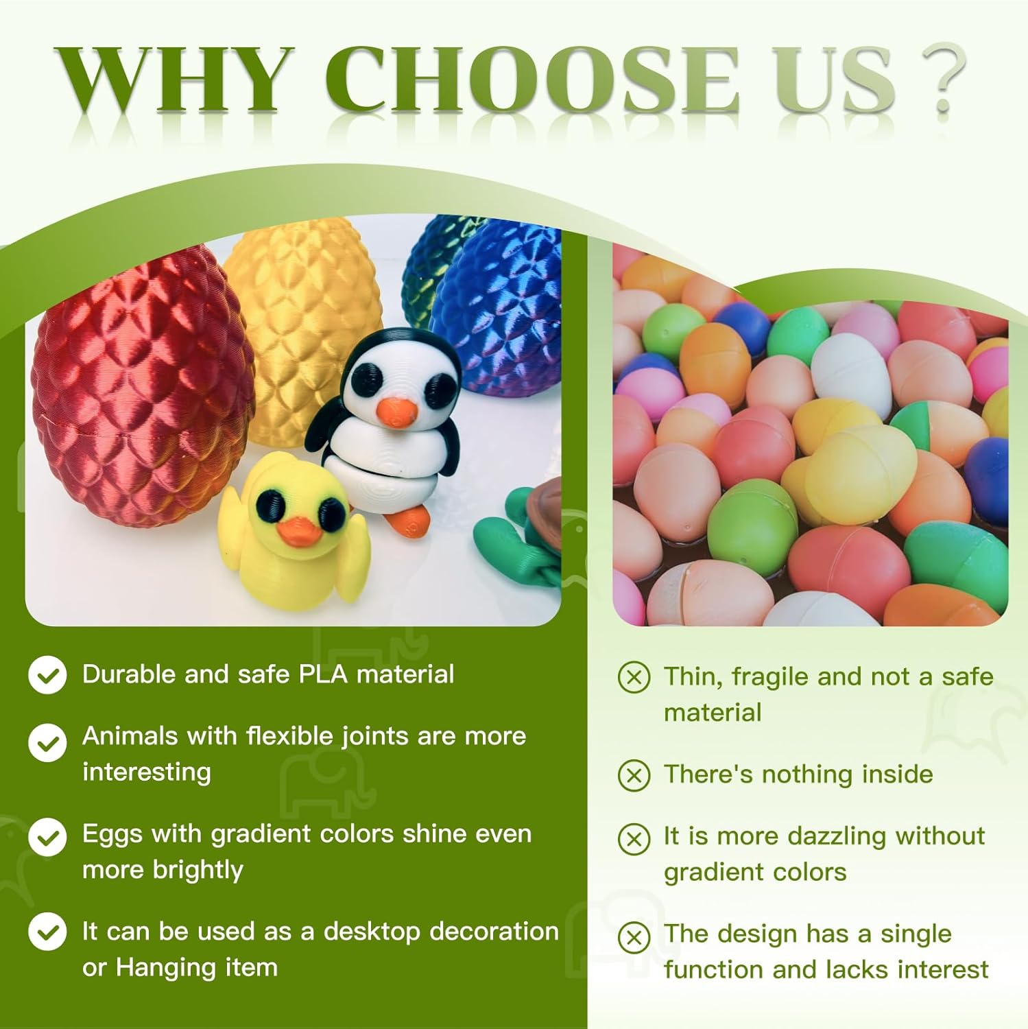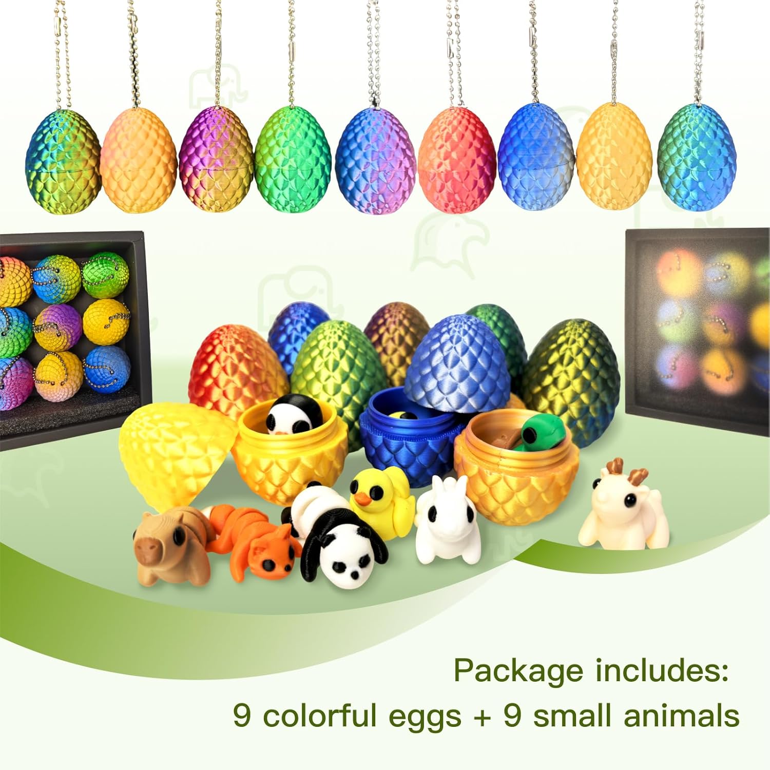 Mini 3D Printed Dragon Egg and 3D Printed Fidget Animals,Toy Fidget Bulk,Animal Miniature Figurines,Mini Egg Fillers,Teen Carnival Prizes(9pcs Set)