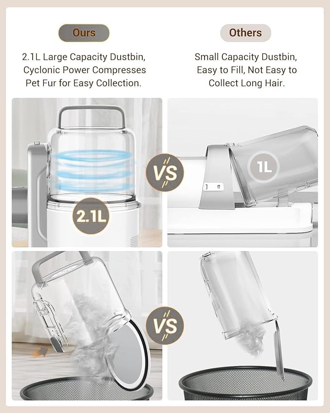 - Large Capacity for Less Frequent Emptying: With a generous capacity, our dog hair vacuum reduces the need for frequent emptying, allowing for longer, uninterrupted grooming sessions.