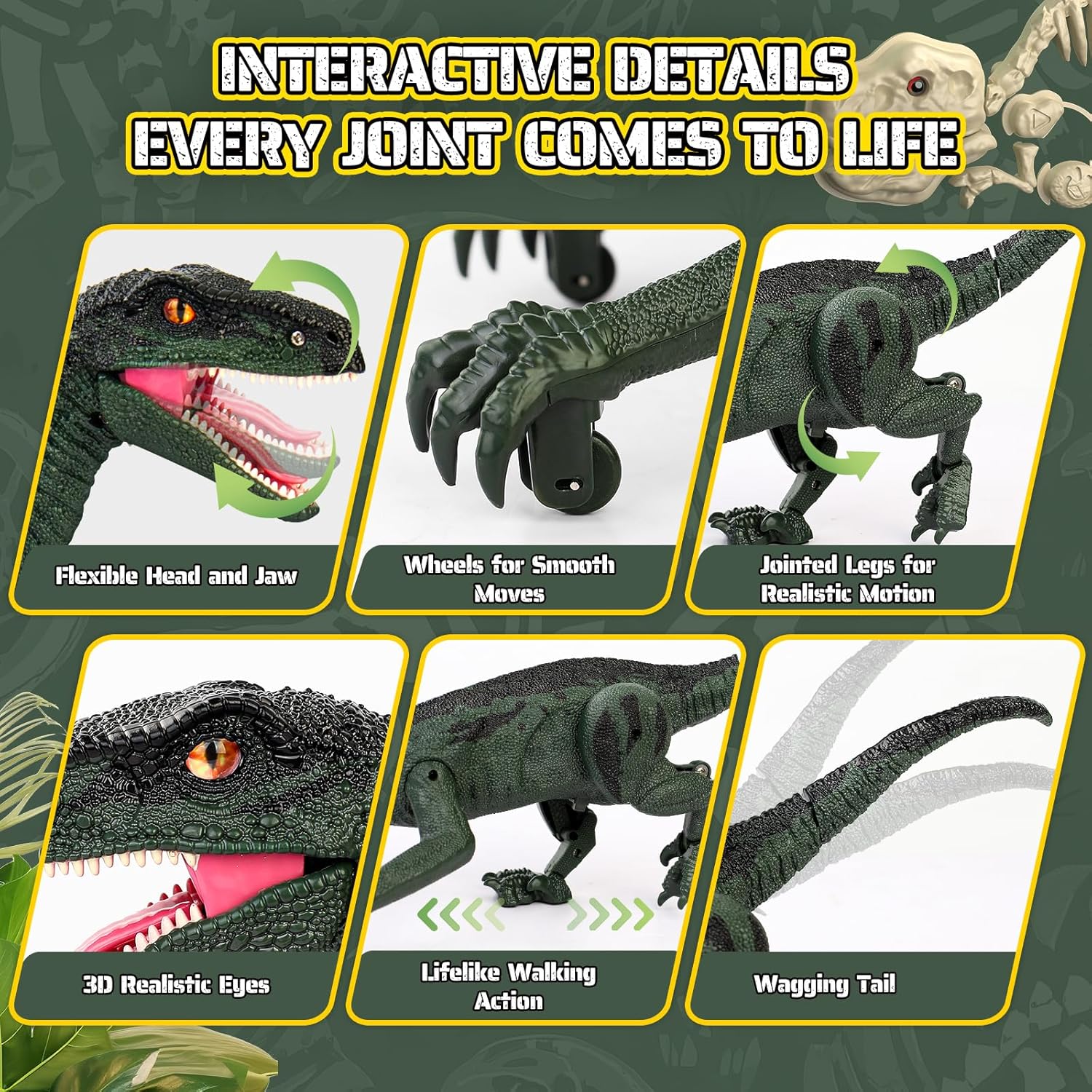 - Lifelike Appearance and Realistic Movement:This velociraptor dinosaur toy is designed with detailed textures, 3D eyes, and a natural walking posture, bringing dinosaurs from the Jurassic era back to life. The smooth movement and vivid details immerse children in a world of prehistoric adventure