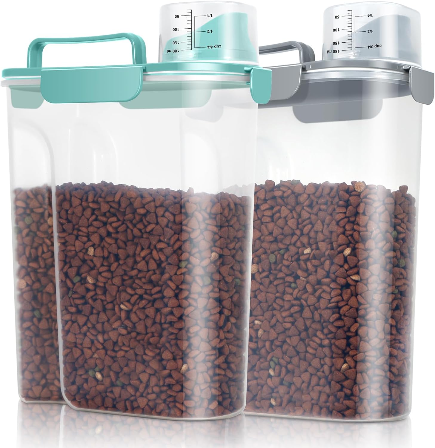 TBMax Pet Dog Cat Food Storage Containers 2 Pack 10 to 14 Lbs, Airtight Cat Food Dispenser with Large Spout & Portable Handle, Travel Dog Treat Storage Bin Bird Seed Container-Cyan+Dark