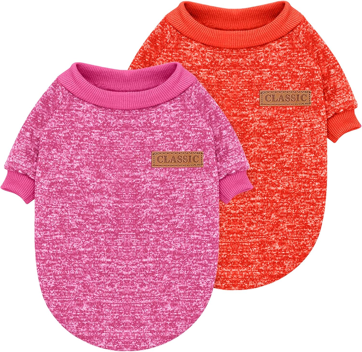 2 Pieces Pet Dog Classic Knitwear Sweater, Fleece Coat for Small,Medium Dogs,Warm Pet Dog Cat Clothes,Soft Puppy Customes for Chihuahua Yorkshire Tzu (Rose Red Orange,XL)