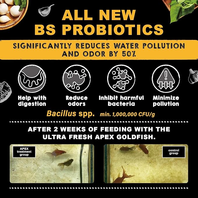 - BS Probiotics: Significantly reduces water pollution and odor by 50%. Specifically designed for fish which can quickly form a healthy intestinal microbiome, enhancing the nutrient absorption. Not only can effectively inhibit harmful and putrefying bacteria but also can decompose ammonia and hydrogen sulfide in excrement, reducing water odor and pollution by up to 50%.