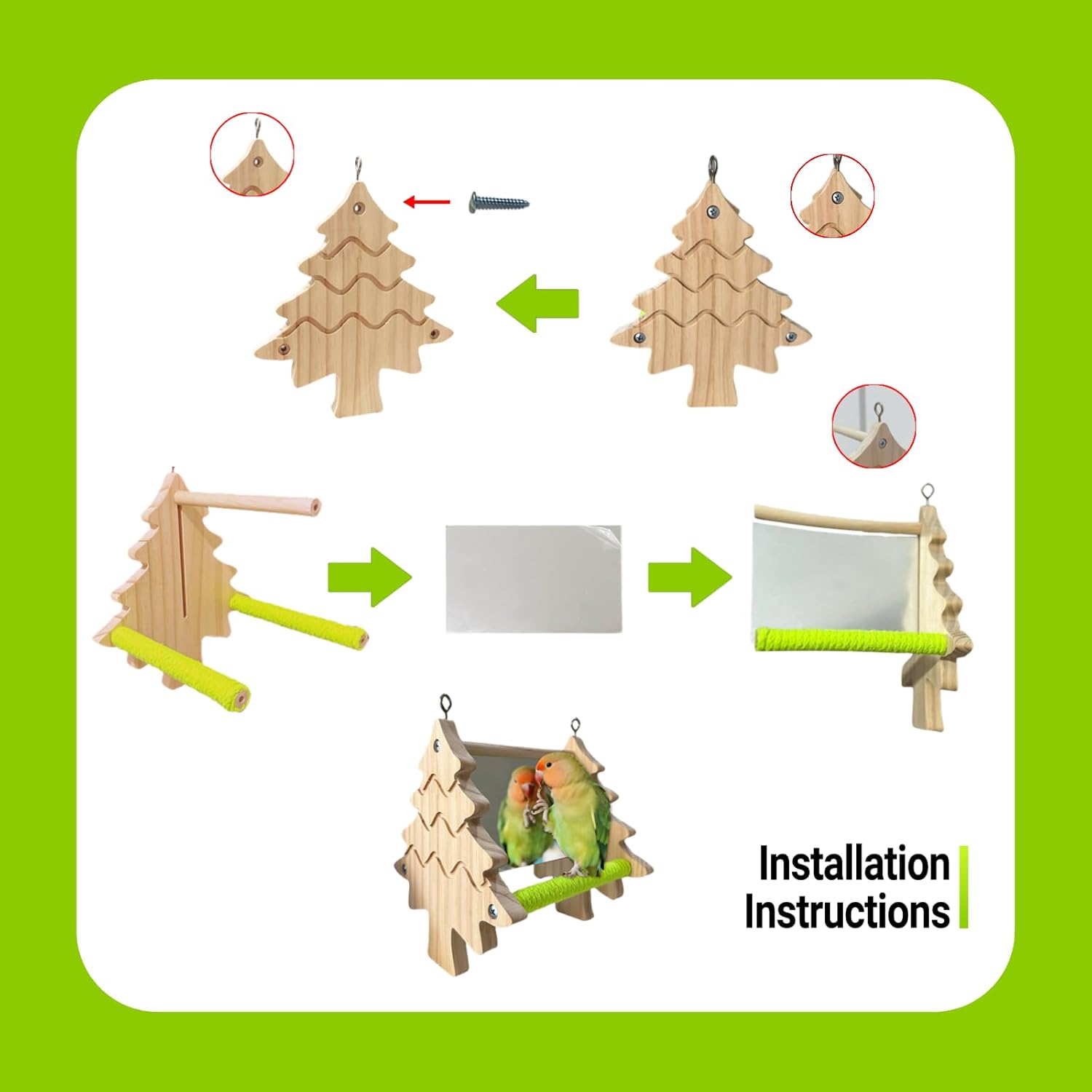 - 【Multifunctional Bird Toys】: Combines a perch, double-sided mirror, and swing in one compact design. Birds can perch, observe their reflections, or gently swing—adding fun and variety to their daily routine.