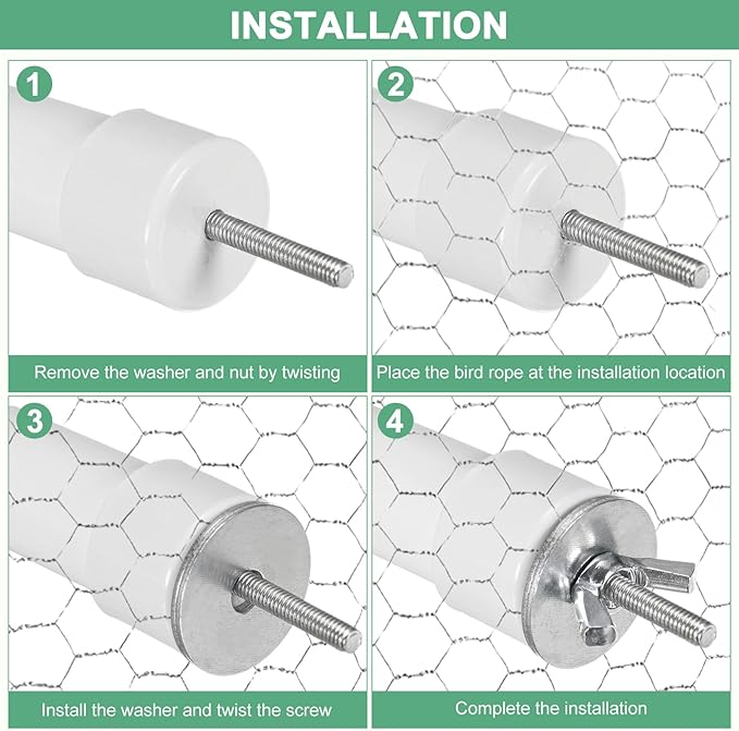 - [Attention] - It can be easily installed on the bird cage without any tools. Adjust the perch rope to the desired shape, unscrew the nuts at both ends, clamp the perch rope on the bird cage, and tighten the nuts to install it