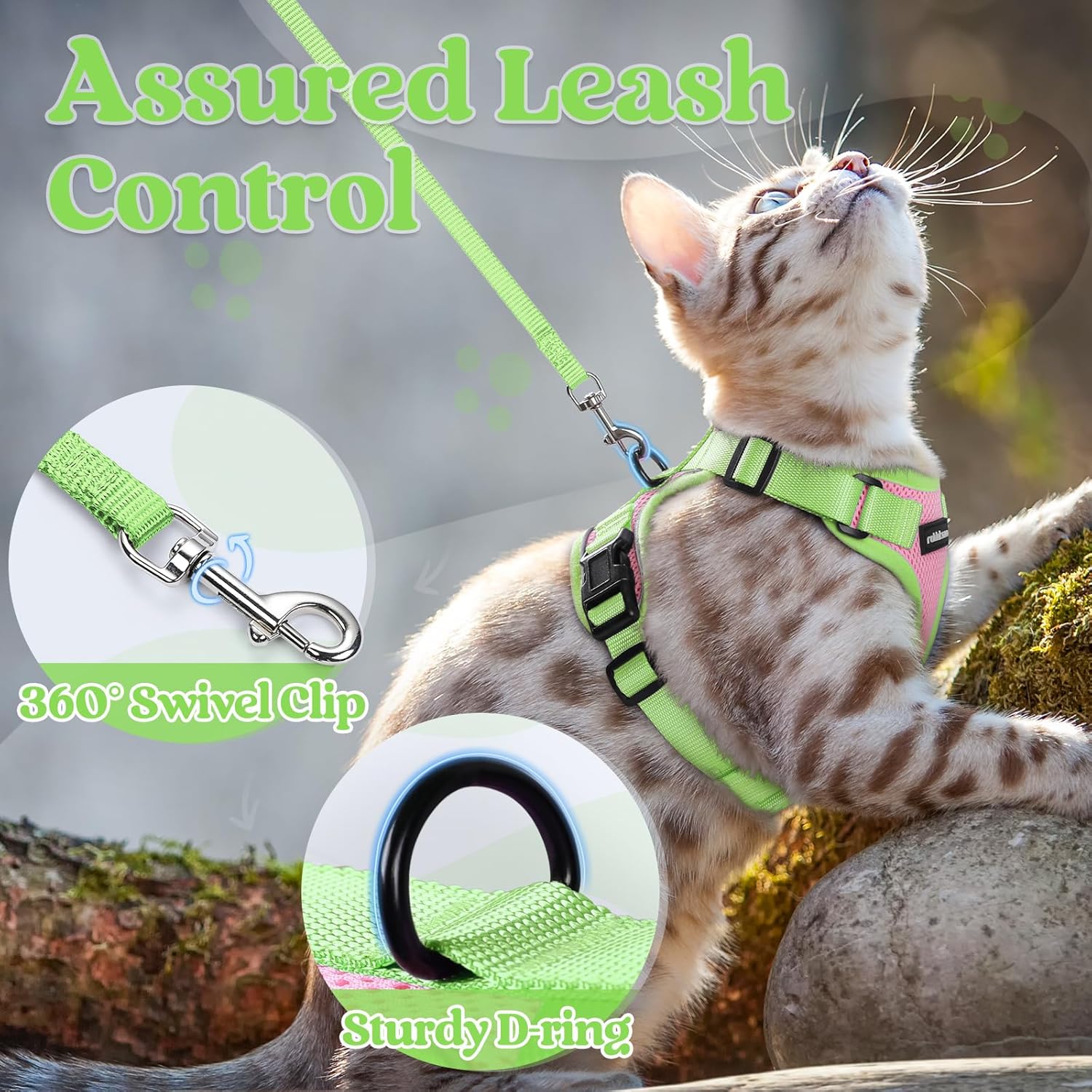 rabbitgoo Cat Harness and Leash Set, Escape Proof Soft Adjustable Vest Harnesses for Outdoor Walking, Easy Control Breathable Kitten Jacket with Reflective Strips, Pink & Light Green, XS