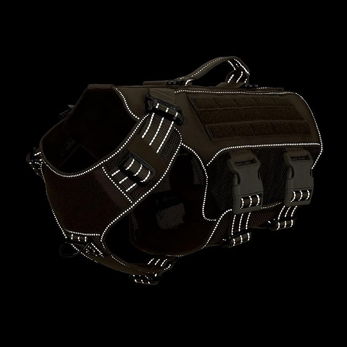 ICEFANG Tactical Mesh Dog Harness for X-Large Dogs,Reflective Dog Molle Vest with Metal Buckles,Hook and Loop Panels,No Pulling Front Clip for Walking Hiking Training (X-Large (Pack of 1), Brown)