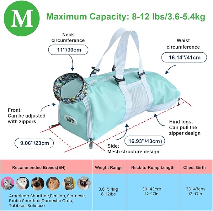 Cinf Cat Nail Clipping Cleaning Grooming Restraint Bag No Scratching Biting for Bathing Nail Trimming Injecting Examining(Mint,M)