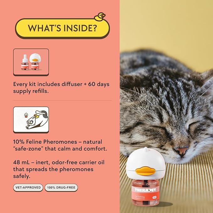 TherapetMD - Cat Calming Diffuser Pheromone Kit - Multi Cat Anxiety Relief Stress Reduction Plugin 700 sq ft Coverage Vet Recommended.