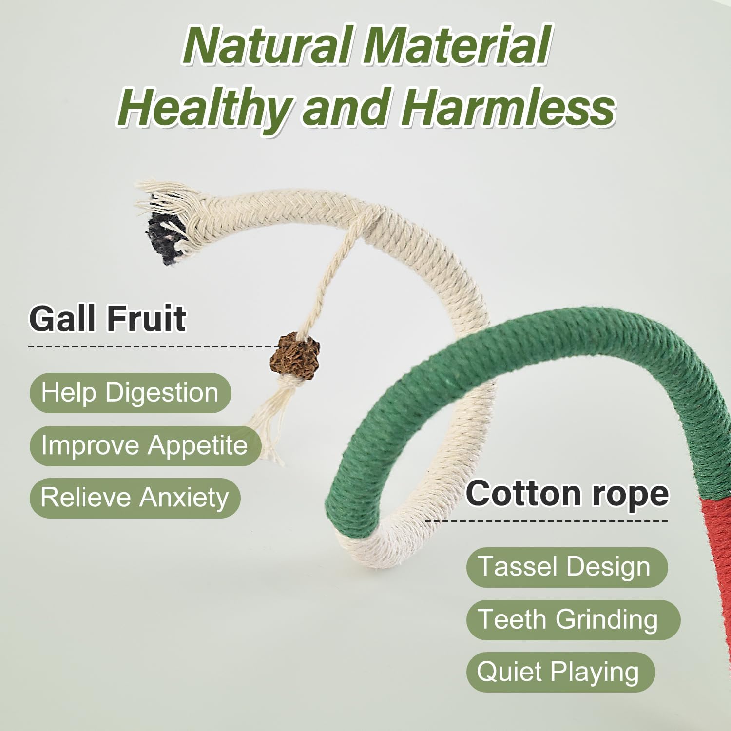 - Safe & Natural Cat Chew Toys: Cat chew stick made from organic cotton rope, sisal, reusable catnip pouches, silvervine sticks, and gallfruit—safe for all cats. These chew toys for cats are 100% handwoven for durability, perfect for even the most aggressive chewers.