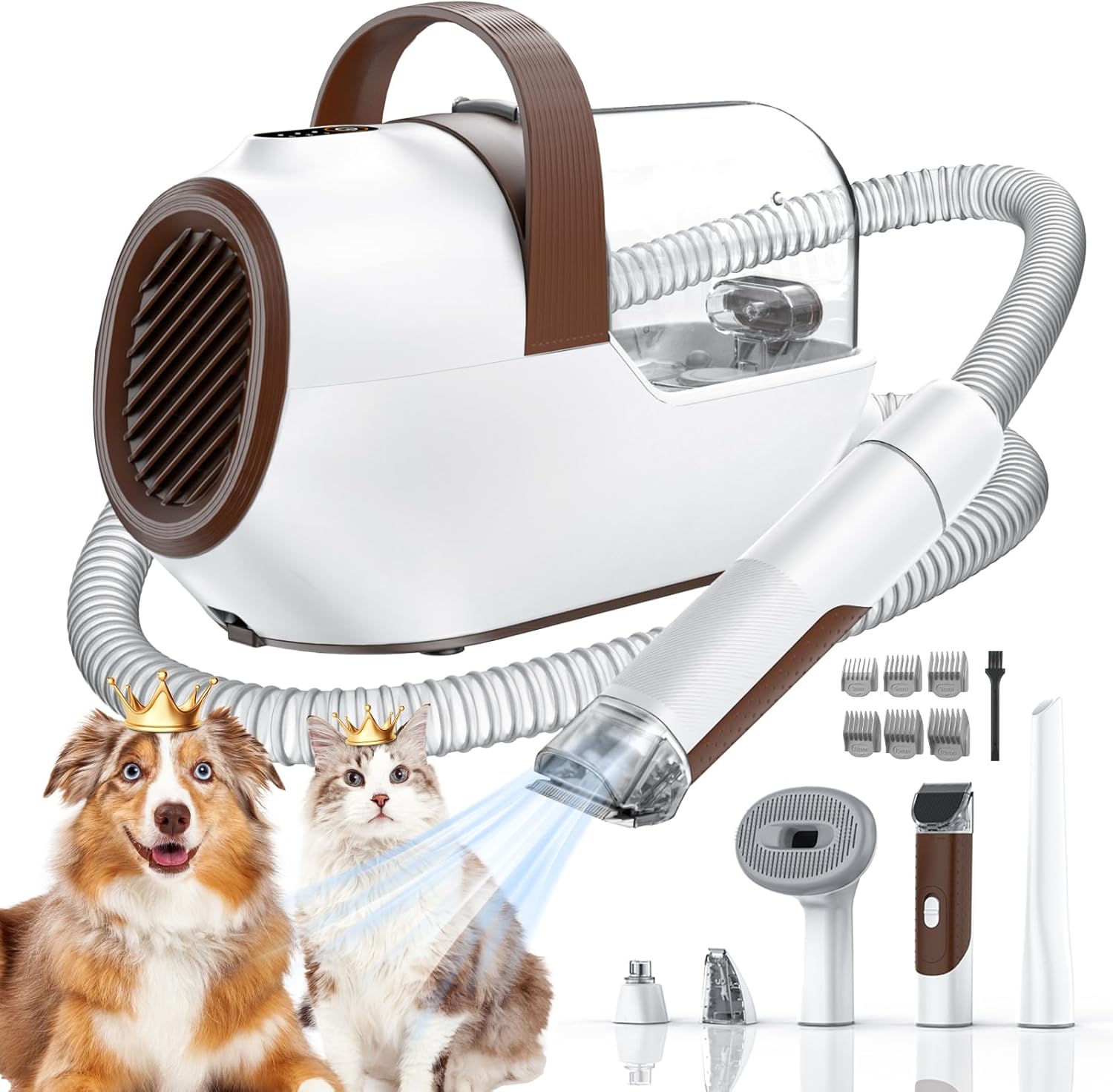 Dog Grooming Vacuum, Dog Grooming Kit with Pet Clipper Nail Grinder, 3 Suction Modes Dog Brush Vacuum with 6 Pet Grooming Tools (Coffee)