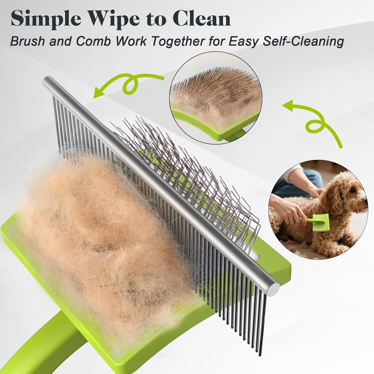 - 【Premium Dog Grooming Kit】Owning a professional dog slicker brush and a comb, you can effectively remove tangles, knots, and mats, significantly reducing brushing and drying time. Let you, as the groomer, give your furry companion a shiny, healthy coat - Goldendoodle Must Haves