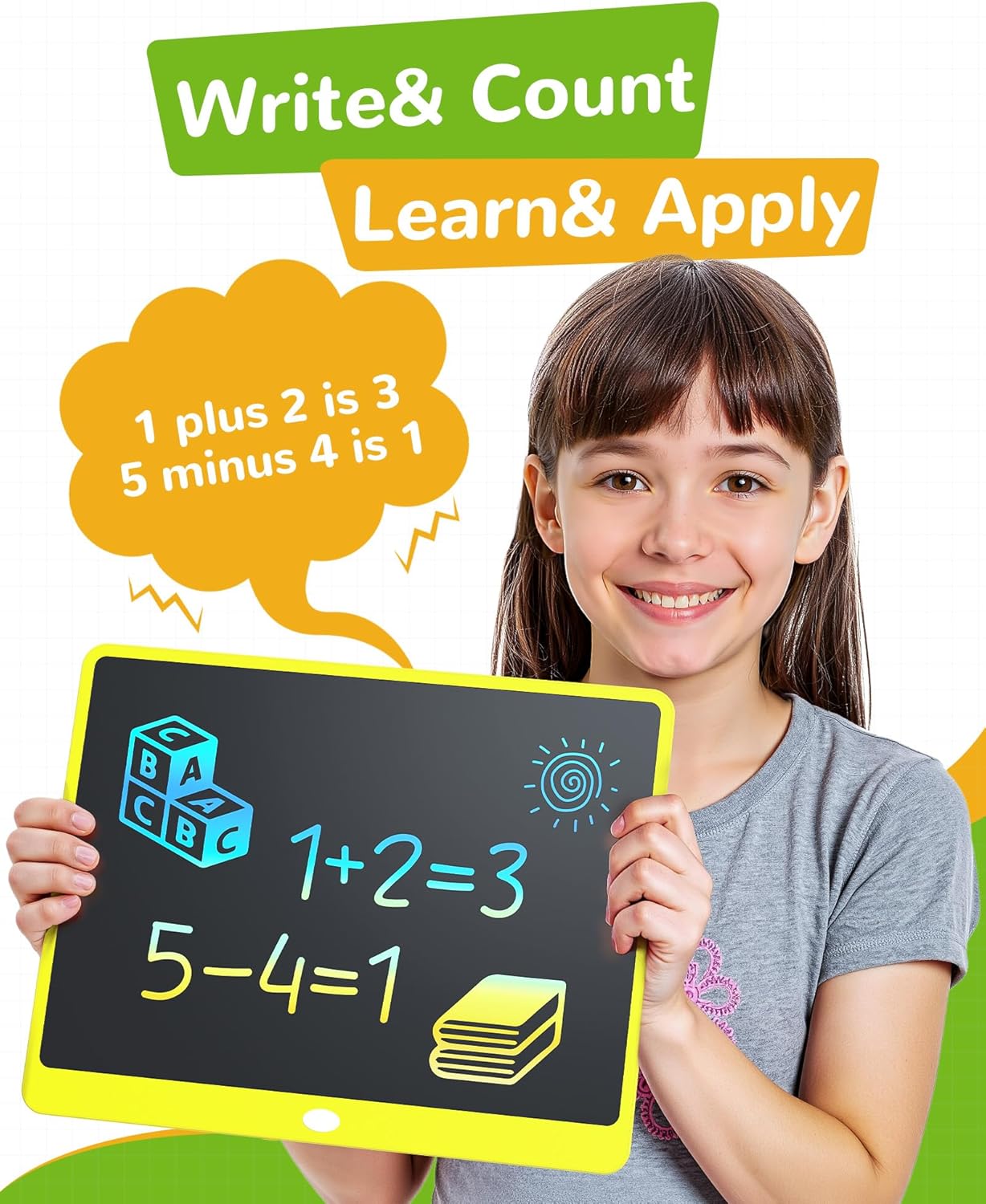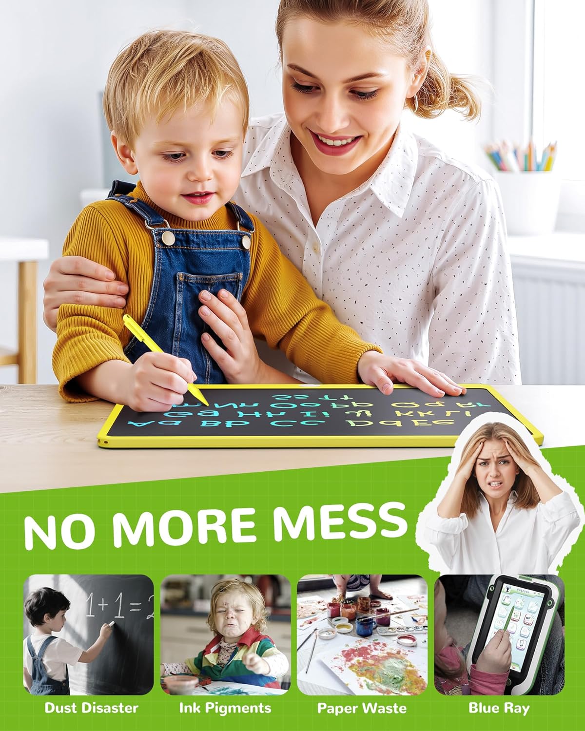 - ENVIRONMENTAL: The battery of the writing and drawing tablet has 3-6 months battery life, can be replaced for cycle use, without charging or plugging in power. The drawing pad toys can provide about 100,000 writings, avoid waste of paper and pencils