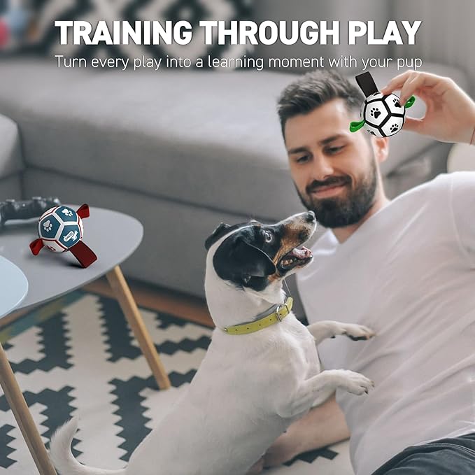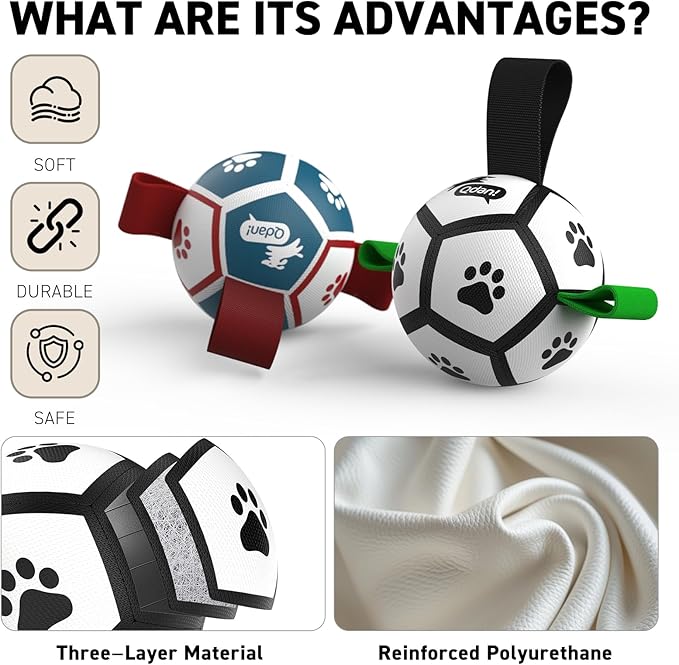 - PUPPY SOCCER BALL:these puppy toys comes with reinforced one long strap for throwing and tug-of-war games, and two short straps for your dog to grab and carry. Perfect for interactive play and training