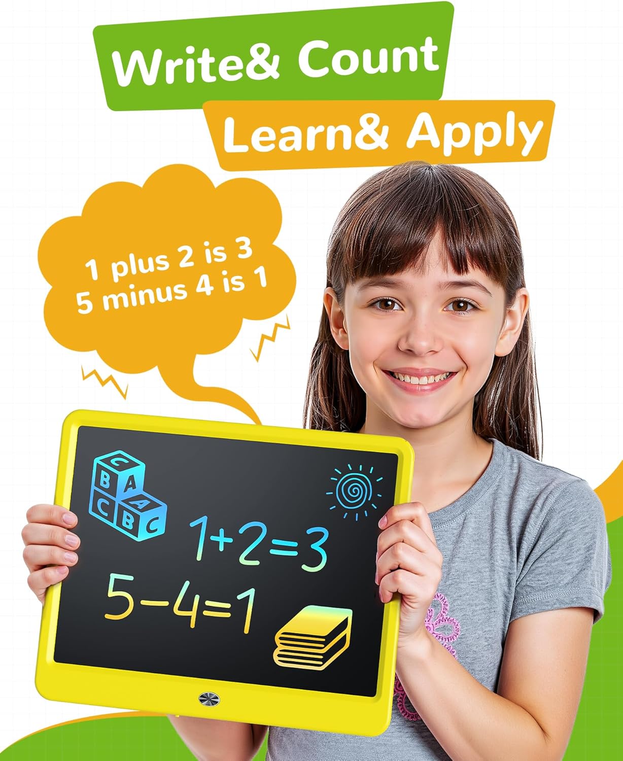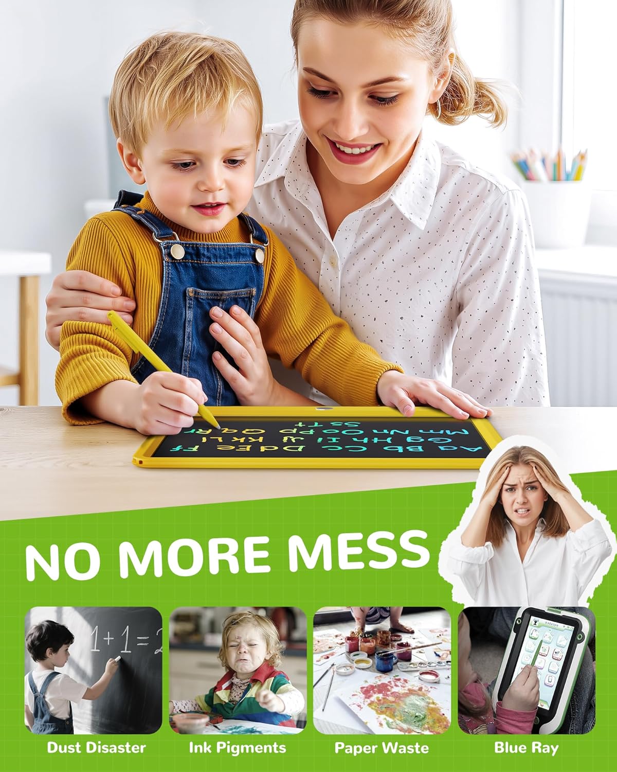 - EYE PROTECTION LCD WRITING TABLET: Adopts 2022 LCD pressure-sensitive technology and 12-inch LCD colorful screen. This doodle board toys without radiation, no glare, safe and comfortable even use for a long time.