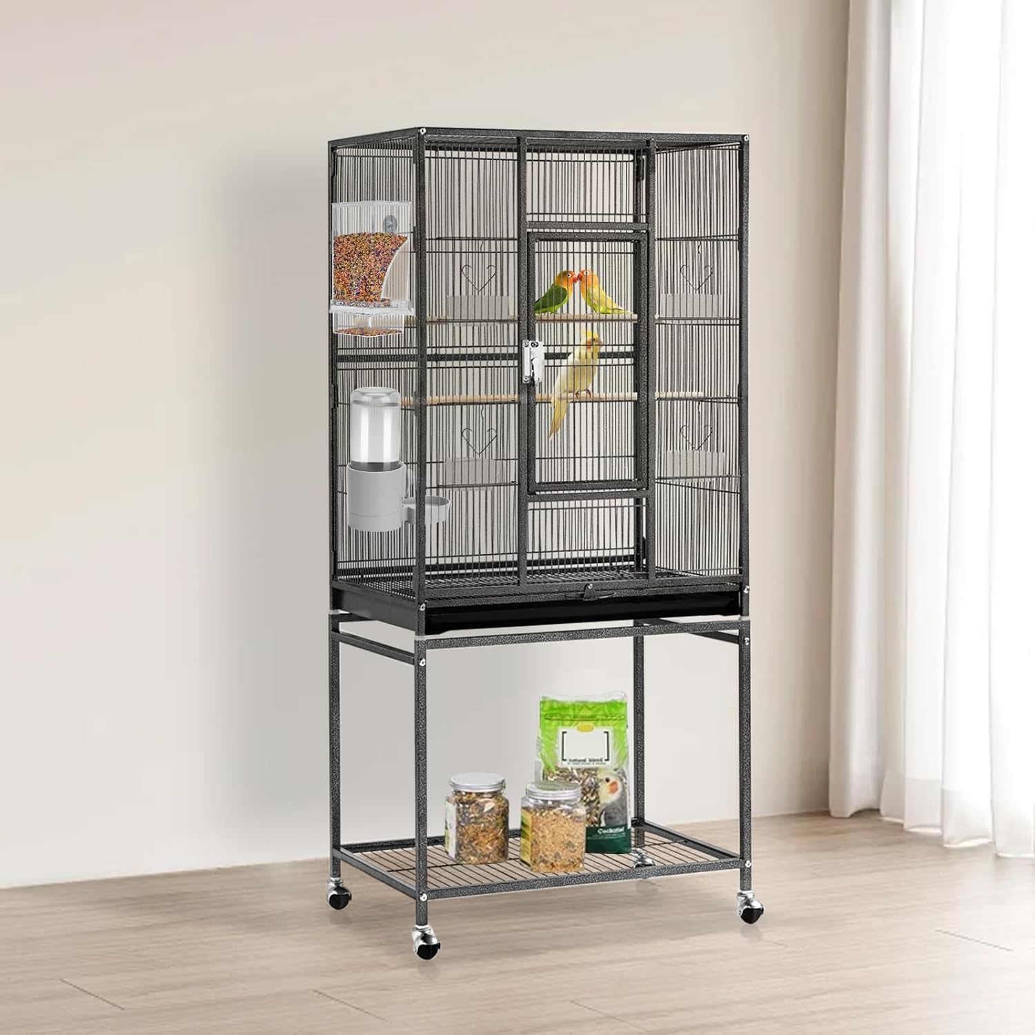 - No Mess Bird Feeder: After the birds eat, the seed shells and uneaten seeds will remain in the slot compartment below, keeping the bird cage or room clean, and the bottom independent drawer design is easy to take out. The top cover of the bird feeder opens to easily refill the food, so you don't need to take it off.