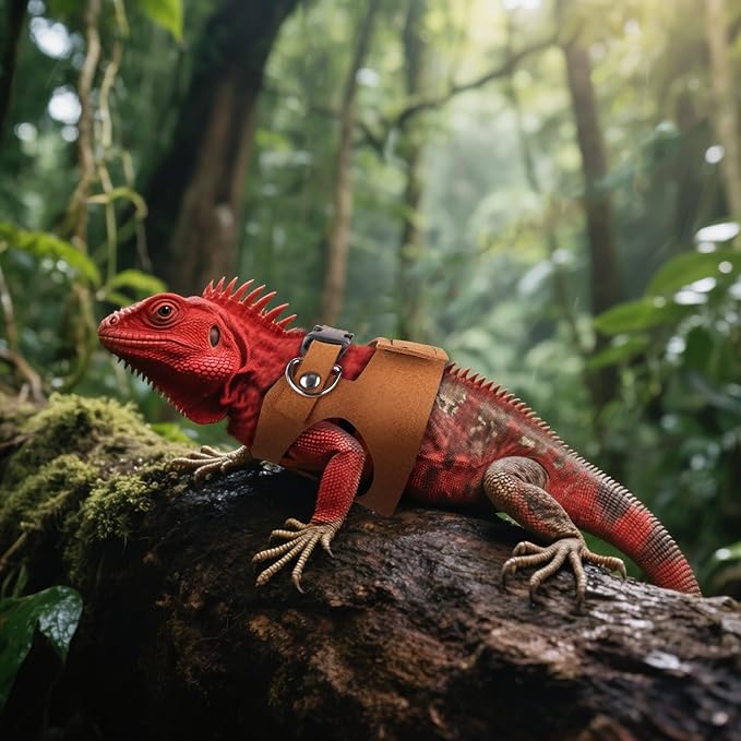 - 【Triple Escape Protection】The lizard harness and leash has a 3-point lock: magnetic buckle + adjustable shoulder straps + safety D-ring to withstand lizard jumps. It is a professionally escape-tested bearded dragon stuff