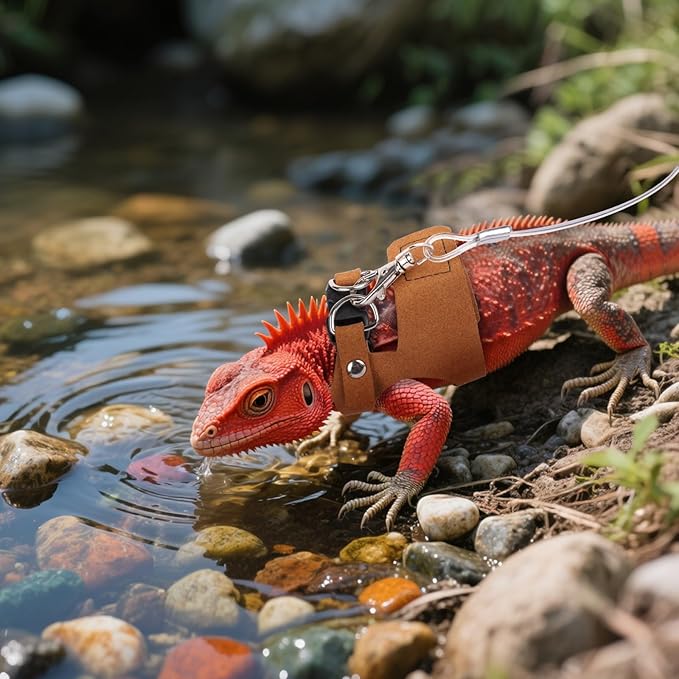 - 【High Temperature Leather】The lizard harness includes vegetable tanned leather with cooling pores to maintain an optimal body temperature of 28-32°C, free of harmful substances, so you can use this leash for bearded dragon with confidence