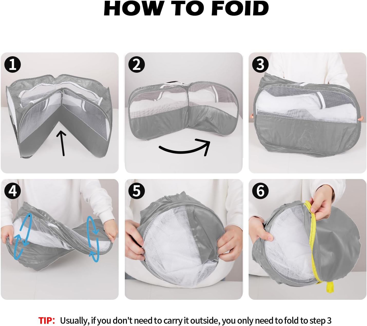 - 4. PORTABLE & STORAGE: pop up playpen do not require complex assembly and can be automatically unfolded for use in seconds. Convenient storage only requires a few steps, without much effort, small size and lightweight after storage is very convenient to carry and store. If you don't need to go out just fold it to a rectangle.