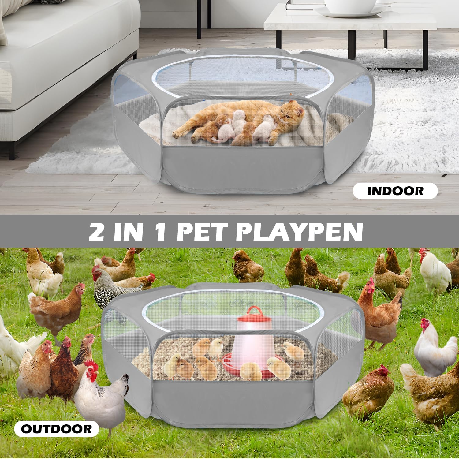 UWE Small Animal Playpen, Chicken Brooder Box with Cover Top, Portable Outdoor Exercise Pet Cage Tent, Waterproof Breathable Pet playpen Indoor for Chick Ktiien Bunny Hamster Guinea Pig, Grey