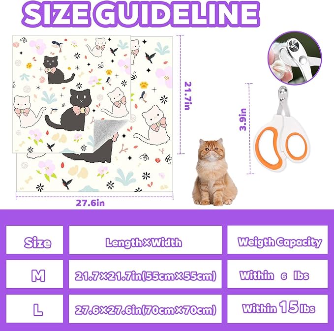 - Universal Size & Flexible Fit: This 21.7x21.7inch cat grooming wrap is larger than prior versions. Suitable for all cats weighing up to 6 pounds, regardless of hair length. Folds freely, wraps variably, adjusts easily for daily care and grooming