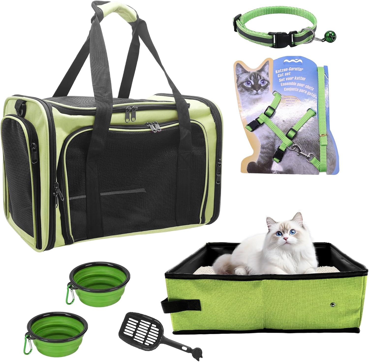 - 【Complete Cat Kit Inclusions 】 Enhance your cat's outdoor experience with our all-inclusive set. The kit features a free cat litter scoop, collapsible bowl, cat harness leash,Litter Bag and cat collar with bell , providing essential tools for convenient outings. Elevate your cat's comfort and safety with this comprehensive package, making every excursion a seamless and enjoyable experience.