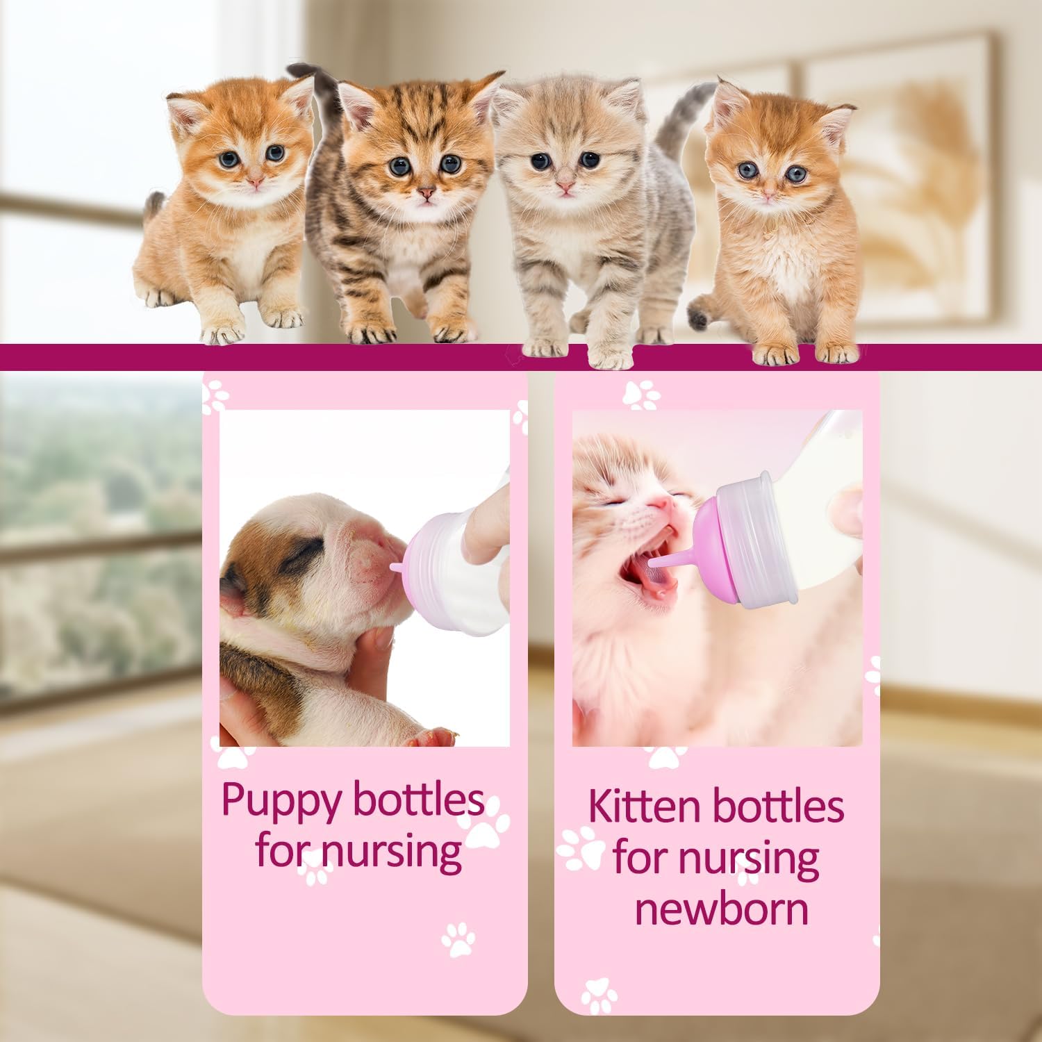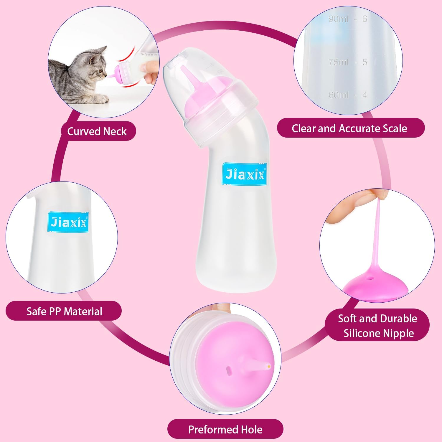 Pet Nursing Bottle Kit for Kitten Puppy,90mlCat Bottle Feeding Kit Nipple Kittens Syringe for Small Cat Dog Newborn Kitten Puppys Rabbits Squirrel Animals (Pink)