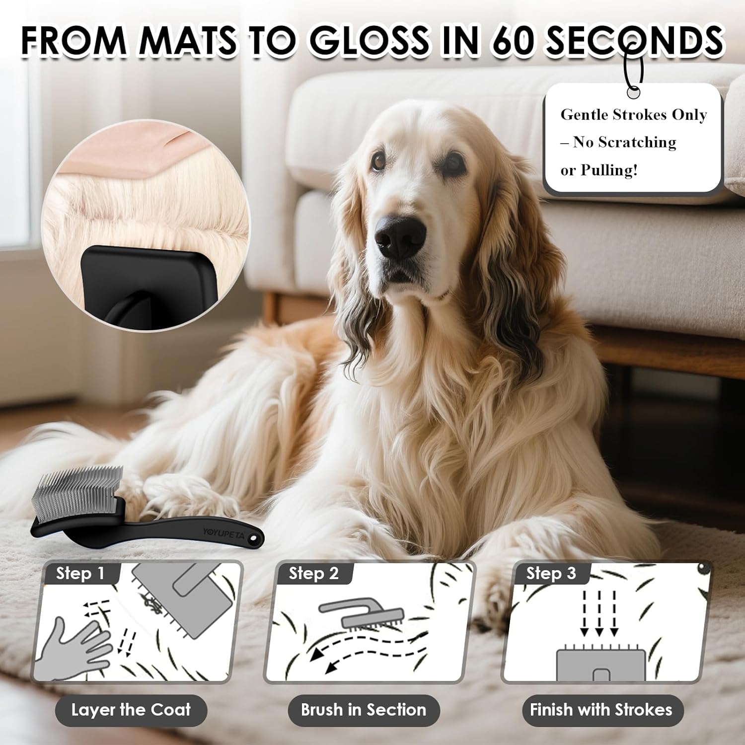 - Pro Grooming Duo: Start with the slicker brush to lift mats and loose fur from thick coats. Immediately follow with the stainless comb’s dual-width teeth to smooth the coat and remove residual hair from brush pins—complete grooming in half the time.