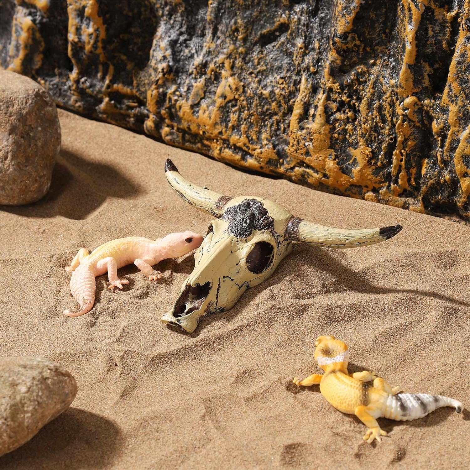 - Unique bull skull tank decor - These reptile tank decorations adopt a distinctive bull skull shape, adding a wild charm to your terrarium or fish tanks, reflecting a natural environment. The exquisite craftsmanship restores the details of the bull skull, which not only serves as a focal point of decoration in the tank, but also provides a lively living space for your pets, giving your tank a desert themed look.