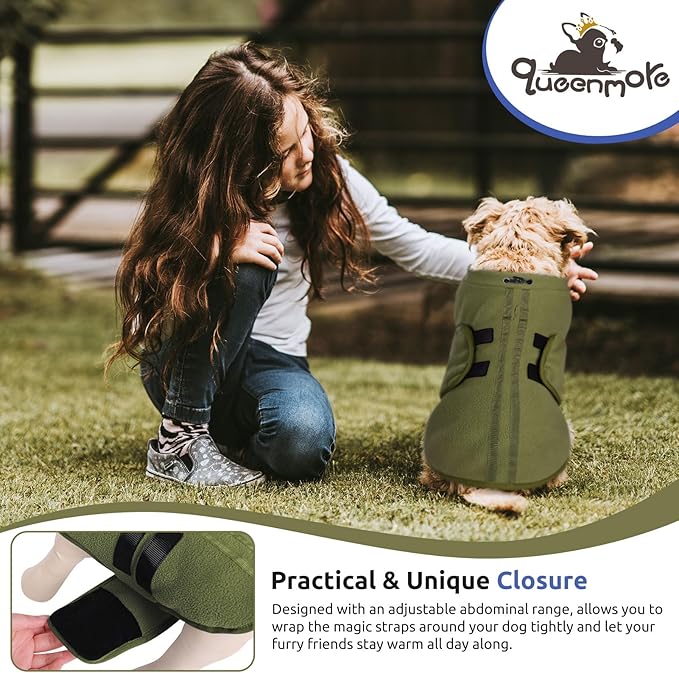 Queenmore XXS Dog Sweaters, Soft Fleece Vest Pullover Dog Jacket with Leash Hole, Warm Winter Dogs Clothes Cold Weather Doggy Dachshund Sweater for Small Dogs Cats Boy or Girl (Army Green, XXS)