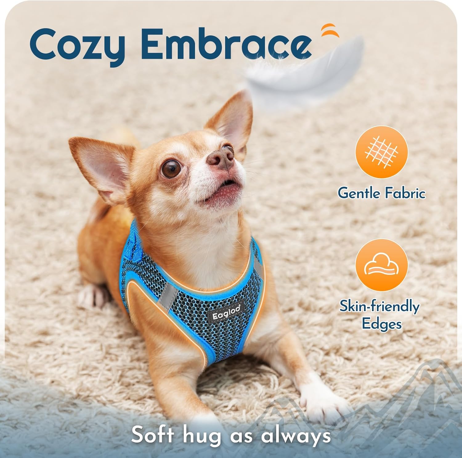 Eagloo Small Dog Harness and Leash Set, Step in Puppy Vest with Breathable Soft Mesh, Walking Reflective Pet Harness for Small Dogs, Blue, S