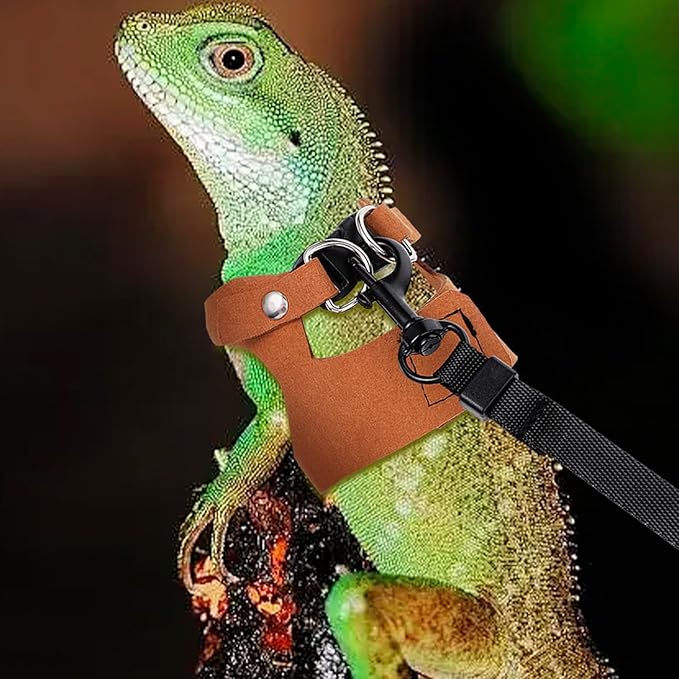 - 【High-Quality Material】Our bearded dragon harness and leash are made of soft leather material, a soft leather lizard harness with exquisite workmanship, ferret harness is suitable for pets to wear. The lightweight and strong nylon pet rope is connected by bite-proof stainless steel.