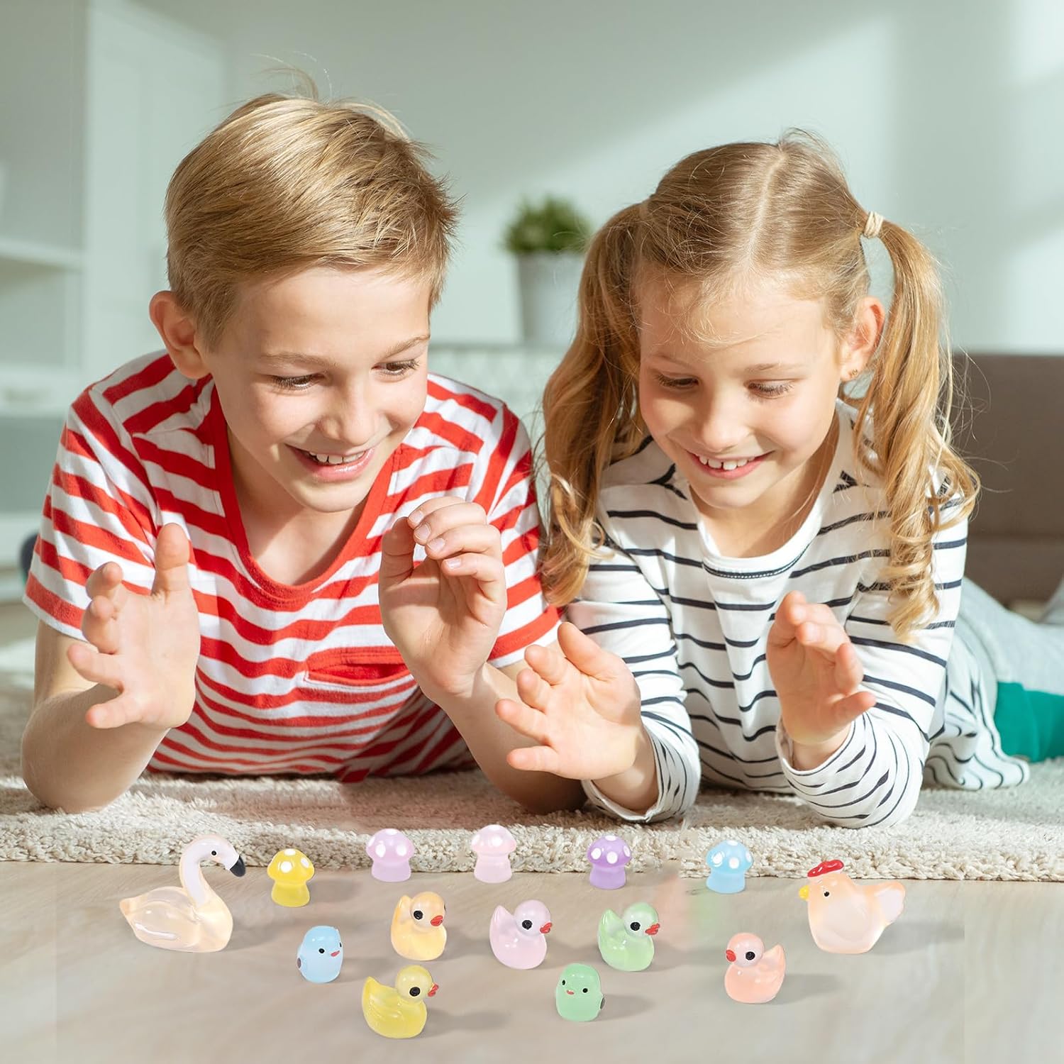 160 Pcs Mini Resin Animals Luminous Tiny Resin Animal Figures to Hide 35 Types Variety Mini Animals Ducks for Fairy Garden Accessories Micro Landscape Aquarium Decor Garden Dollhouse Accessories