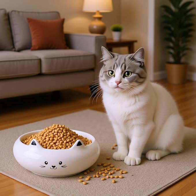 - 【Heavy and Stable Base】 The sturdy and heavy base prevents cats from tipping the bowl over or pushing across the floor and keeps it in place. The circular shape inside of the bowl is designed to prevent food from spilling.