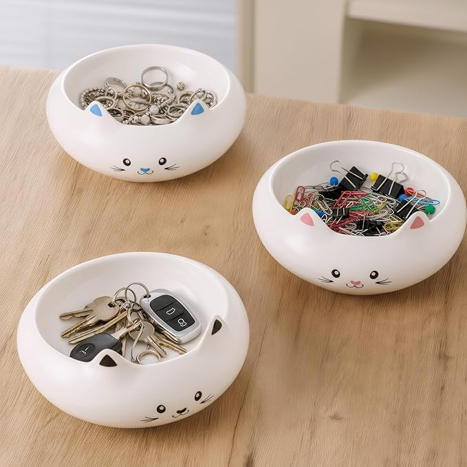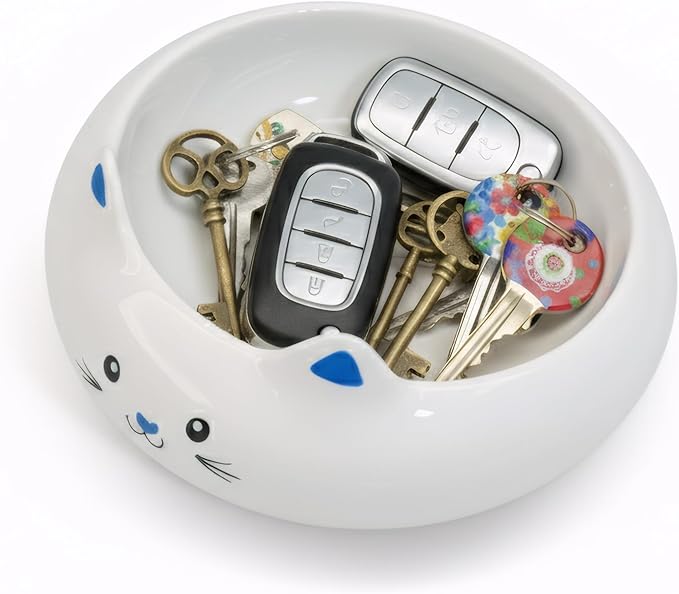 Key Holder Bowl, Home Decor, Desk Decor & Gifts for Girls, Cat Bowls, Ceramic Cat Food Bowl, Cute Kitten Water Bowls with 7.1oz Capacity, Cats Deals, Whisker Fatigue Friendly, Multi-Use