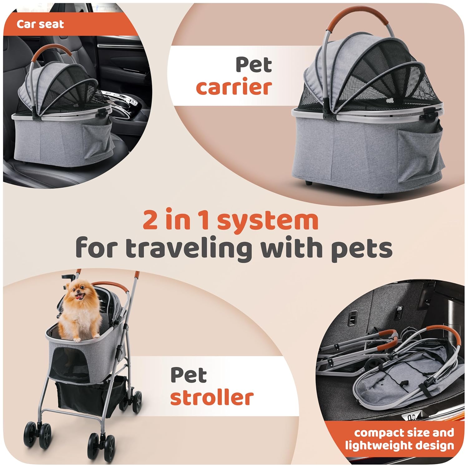 - π§³ 2-in-1 Pet Travel System: Carrier + Stroller. Use as a pet stroller or detachable carrier β perfect for car rides, vet visits, daily walks, or public transport. The compact design folds down to just 8.6β high for easy storage.