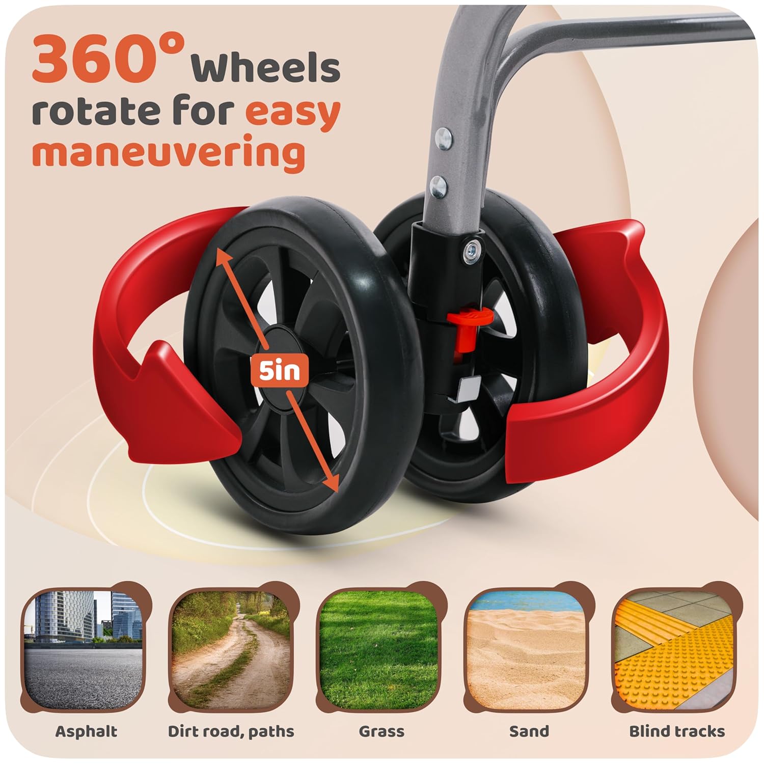 - π‘οΈ Premium Safety with Upgraded Locking System. New premium lock mechanism on the cradle side ensures easy and secure closure with one click. Safety is reinforced with dual side locks (zipper + snap button), two leash carabiners, and a 360Β° swivel wheel brake system.