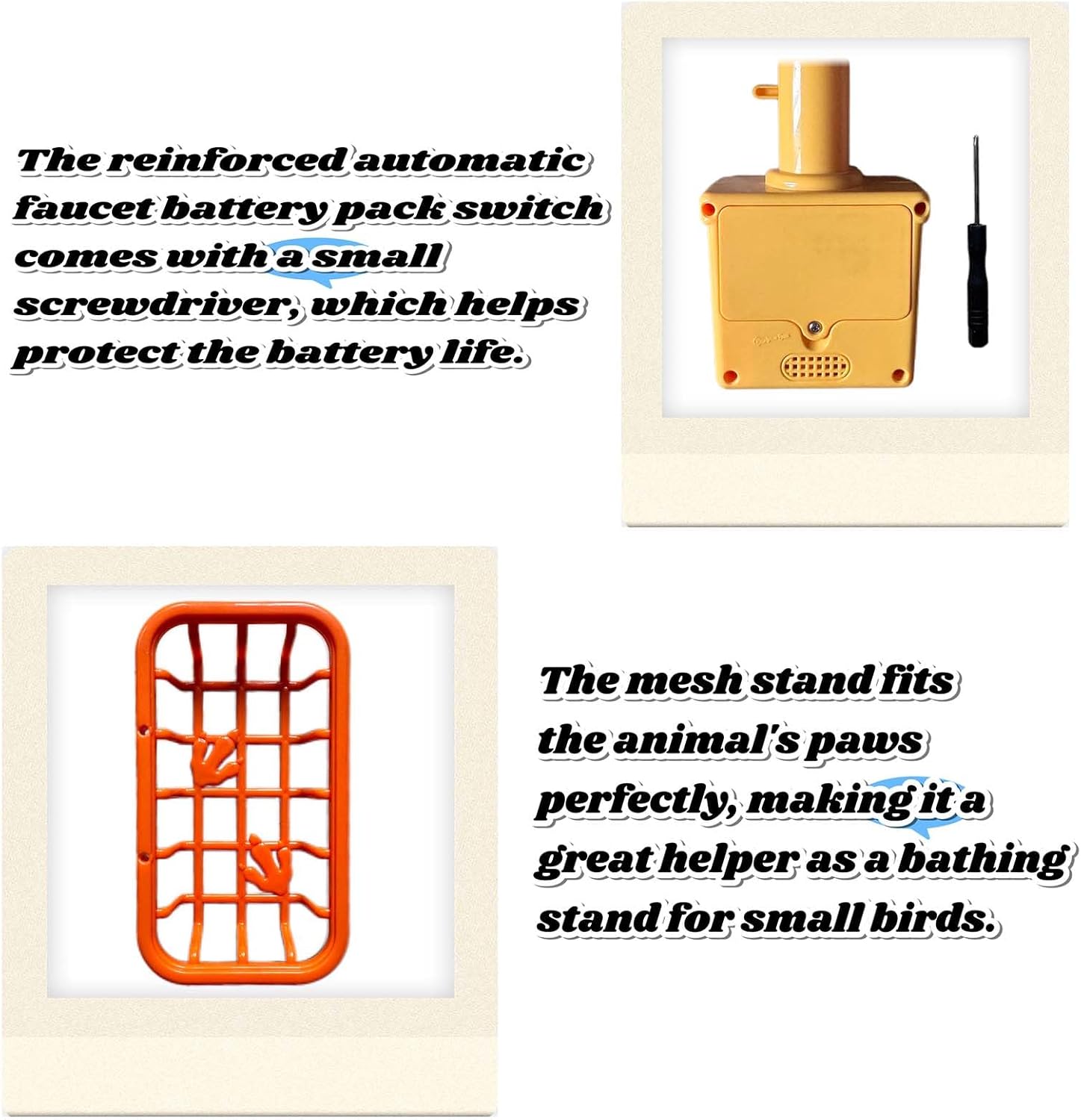 - Convenient Automatic Watering Faucet: Ensure cockatiels, budgies, and other small birds enjoy consistent fresh water with the built-in automatic faucet. The gentle water flow (e.g., 0.5L/min) mimics natural rain for hydration, while its compact design doubles as a bird bath for cage use—perfect for quick rinsing without removing your pet. Easy to install and clean, this low-maintenance solution is ideal for busy owners who value hygiene and convenience