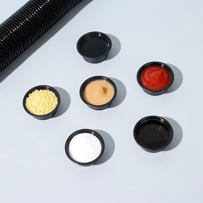 - QUANTITY: Bulk pack of 100 black plastic feeding bowls for long-term terrarium maintenance needs. With 100 cups in each pack, you'll have plenty of options for rotating clean dishes or setting up multiple feeding stations.