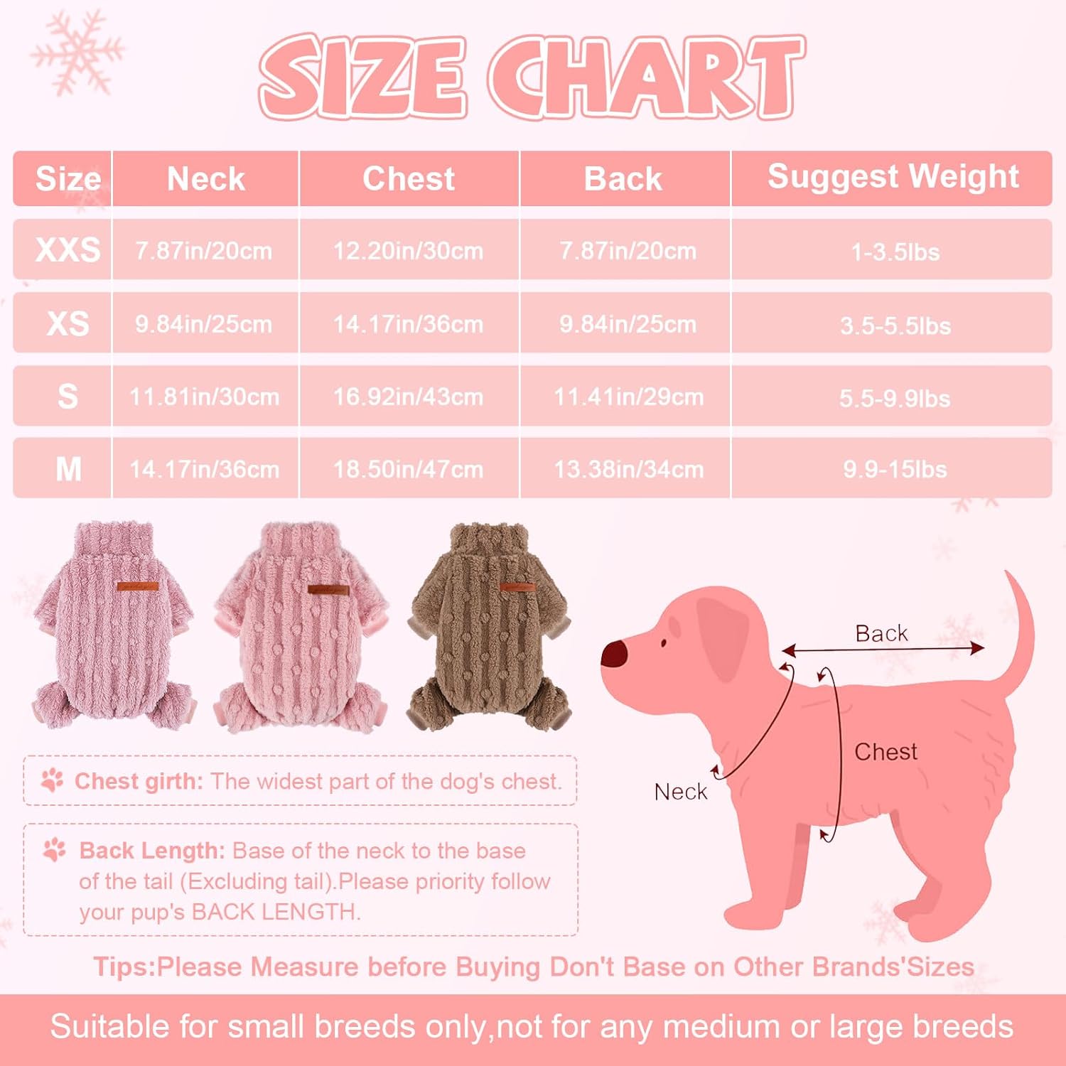 Dog Sweater for Small Dogs, XXS Dog Sweaters Turtleneck Doggie Pajamas Jumpsuits, Small Doggy Clothes Girl Boy, Cold Weather Puppy Onesie Outfits Yorkie Chihuahua Apparel,Light Pink, S