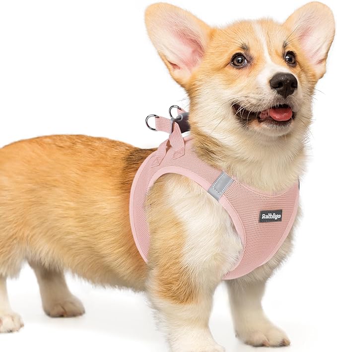 rabbitgoo Small Dog Harness, Step-in Soft Mesh Puppy Vest with Safety Buckle, Breathable Reflective Pet Harness for Small Medium Dogs, Pink L